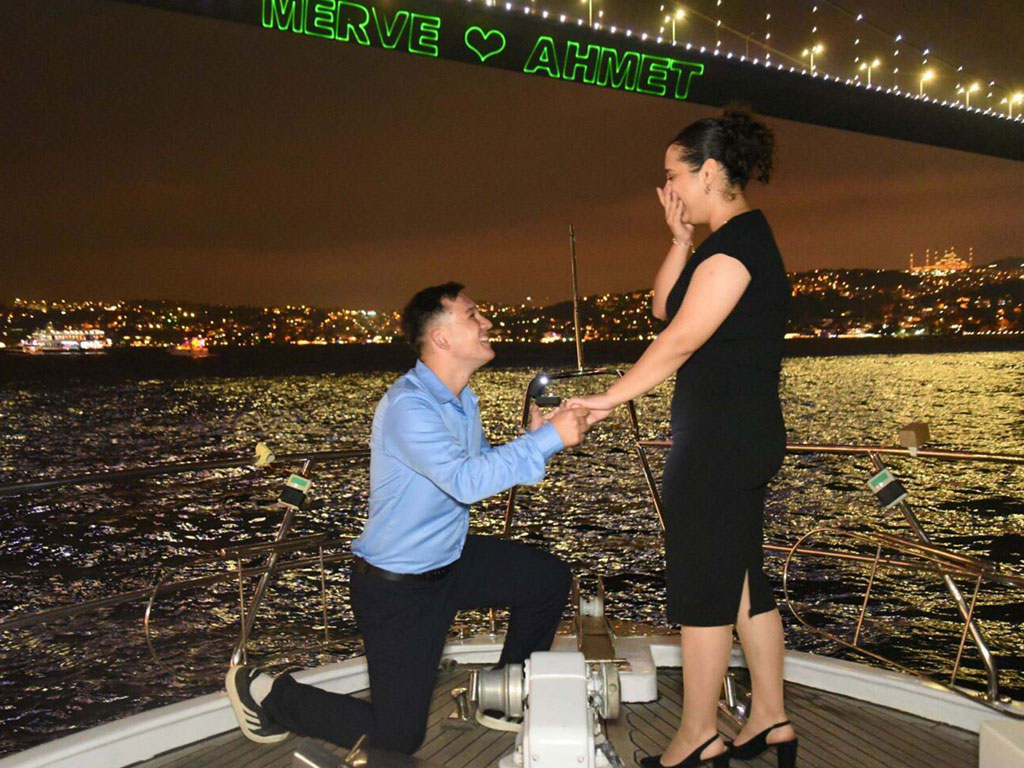 İstanbul Boğazı, romantizmin ve büyüleyici manzaraların buluştuğu eşsiz bir mekândır. Evlilik teklifinizi bu muhteşem suyolunda bir yatta yapmak, unutulmaz bir deneyim sunar. Yatın keyifli atmosferinde, Boğaz’ın huzur veren sularında süzülürken, İstanbul’un ikonik siluetini izlemek teklifinize ayrı bir anlam katacaktır. Özellikle gün batımında, kızıla boyanan gökyüzü ve yavaşça yanan şehir ışıkları, bu özel anı daha da büyüleyici hale getirir.