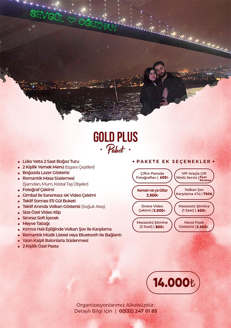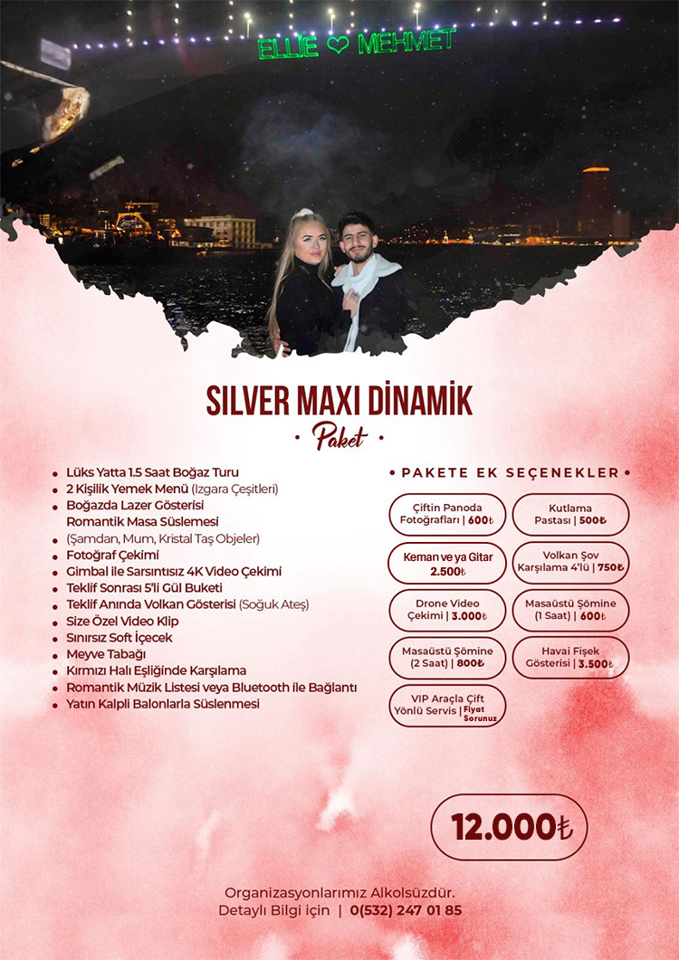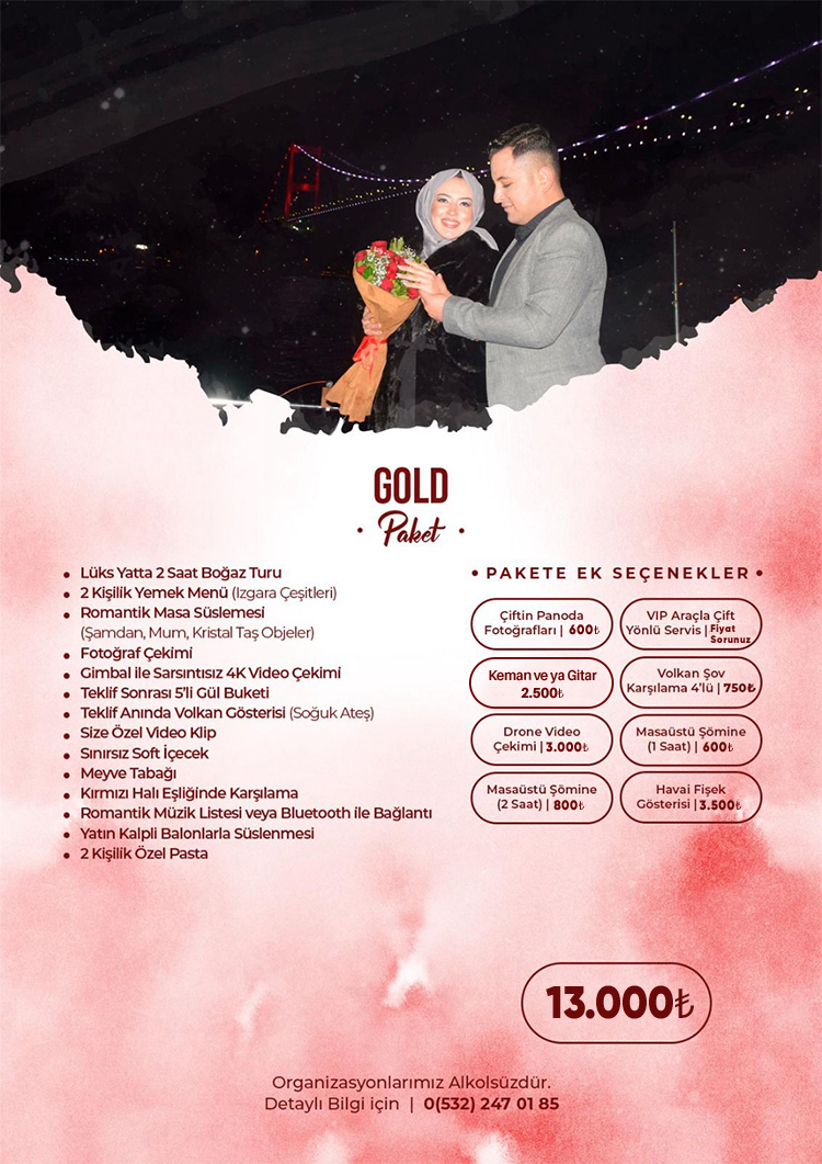 Bu özel anı taçlandırmak için yat turunu özelleştirmek de mümkündür. İster canlı müzik eşliğinde romantik bir atmosfer yaratın, ister fotoğraf çekimiyle anı ölümsüzleştirin. İstanbul Boğazı’nda bir yatta evlilik teklifi yapmak, sadece bir teklif değil, aynı zamanda bir aşk hikayesinin en güzel sayfalarından birini yazmak demektir. Bu deneyim, hem kalbinizi hem de hafızanızı dolduran eşsiz bir anıya dönüşecektir.